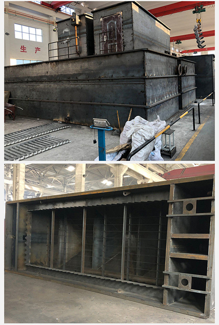 工藝流程說明: 預(yù)處理 污水經(jīng)沉淀池出來與其它生活污水匯總后進(jìn)入污水處理站,利用格柵池隔除較大的雜質(zhì)及漂浮物,污水自流至調(diào)節(jié)池,這樣既可以調(diào)節(jié)水量,又可以均衡水源。調(diào)節(jié)池采取地埋式,池頂可植上草皮。經(jīng)調(diào)節(jié)后的污水用排污泵提升至生化池。